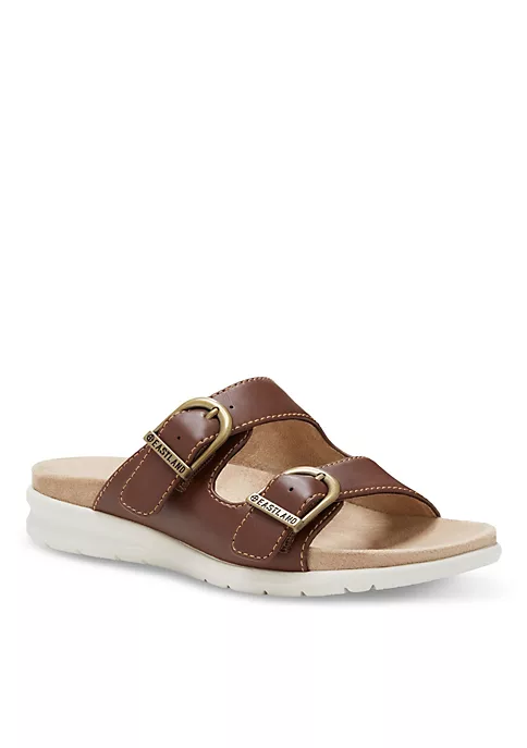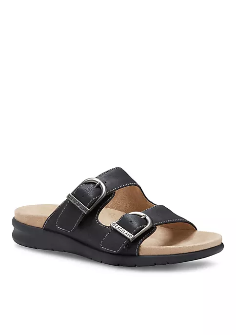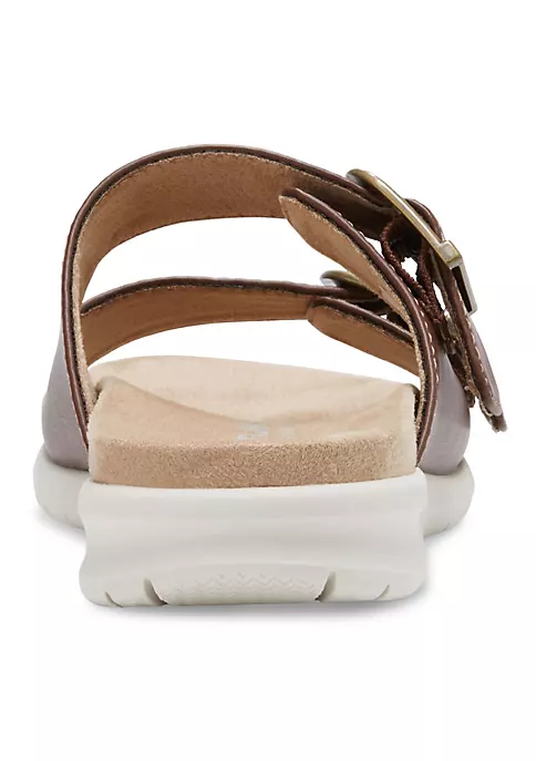 The super comfy Avery slide features adjustable straps for a custom fit. Synthetic upper with a soft microfiber fabric lining for barefoot comfort. Adjustable strap and buckles provide a custom fit. Cushioned fabric-lined insole for all-day comfort. Durable, shock absorbing EVA outsole. Heel Height: 1”.