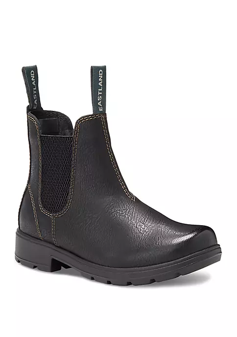 Slip into the Baja Chelsea boots by Eastland® and tackle your day in casual comfort. Featuring a synthetic upper with fabric lining, these boots flaunt dual-side elastic goring that allows for easy on and off. A fully-lined, cushioned insole provides all-day comfort, while a shock-absorbing polyurethane outsole offers lightweight durability and traction.