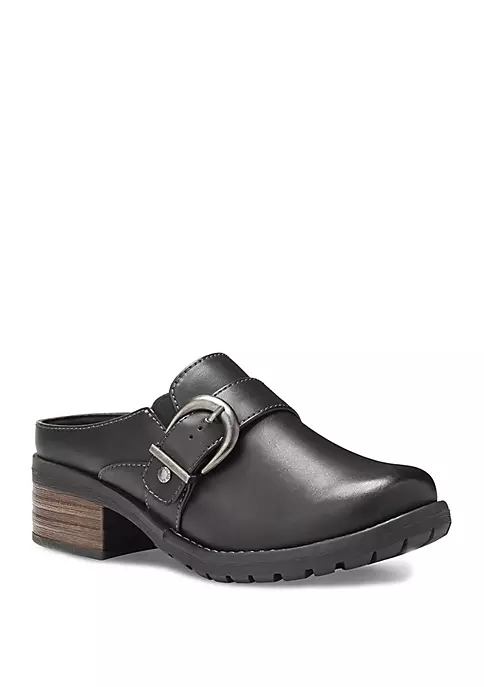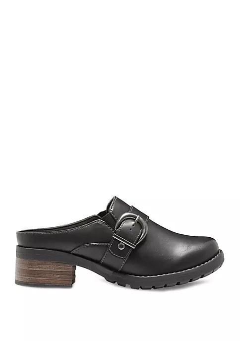 Featuring a fabric-lined synthetic upper, the Erin strap and buckle mules by Eastland® pair perfectly with breezy skirts and your favorite jeans. The dual-side elastic goring allows for easy on and off, while the fabric-lined memory foam comfort insole supports and conforms to the curves of your foot.