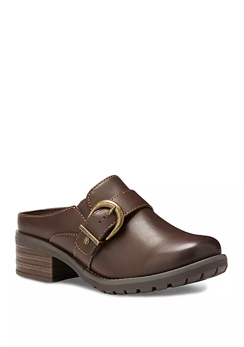 Featuring a fabric-lined synthetic upper, the Erin strap and buckle mules by Eastland® pair perfectly with breezy skirts and your favorite jeans. The dual-side elastic goring allows for easy on and off, while the fabric-lined memory foam comfort insole supports and conforms to the curves of your foot.
