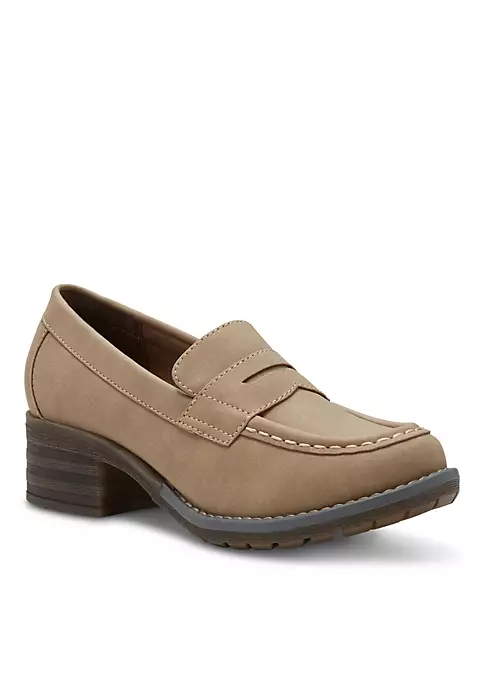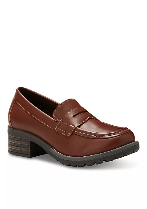 The Holly’s classic penny loafer profile finds its perfect mate with an elevated sole. Fabric-lined synthetic upper conforms to your foot for a custom fit. Fabric-lined memory foam comfort insole supports and conforms to the curves of your foot. Textured TPR outsole provides great slip-resistance, durability and shock-absorbing cushioning. Heel Height: 1 3/4″.