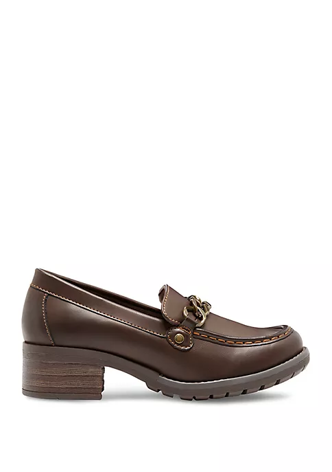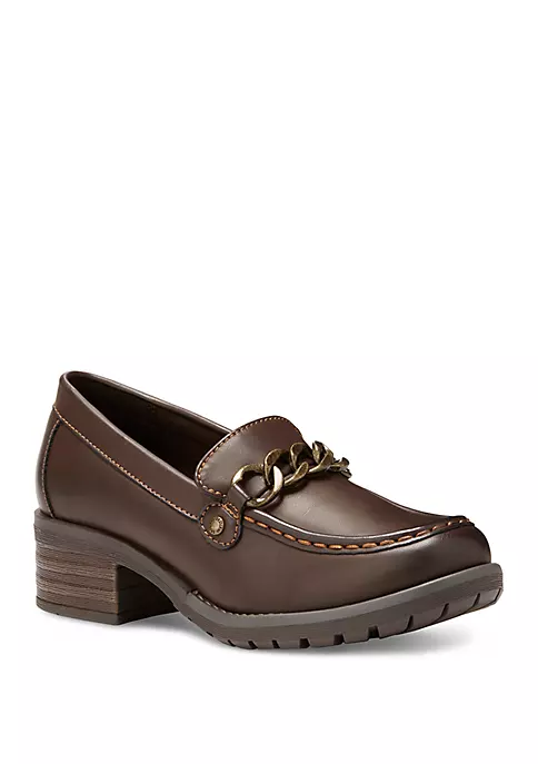 The timeless Nora slip-on shoes by Eastland® are detailed with brass chain hardware and feature a fabric-lined synthetic upper. The fabric-lined memory foam comfort insole supports and conforms to the curves of your foot, while the textured rubber outsole provides great slip-resistance, durability and shock-absorbing cushioning.