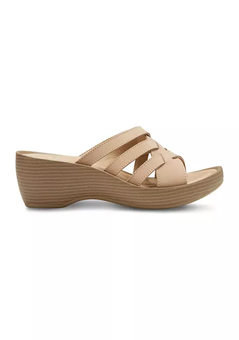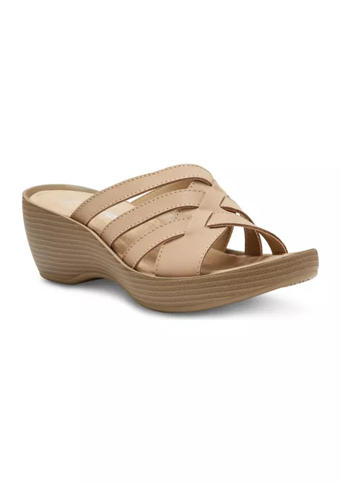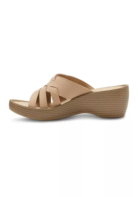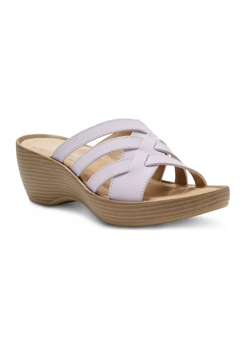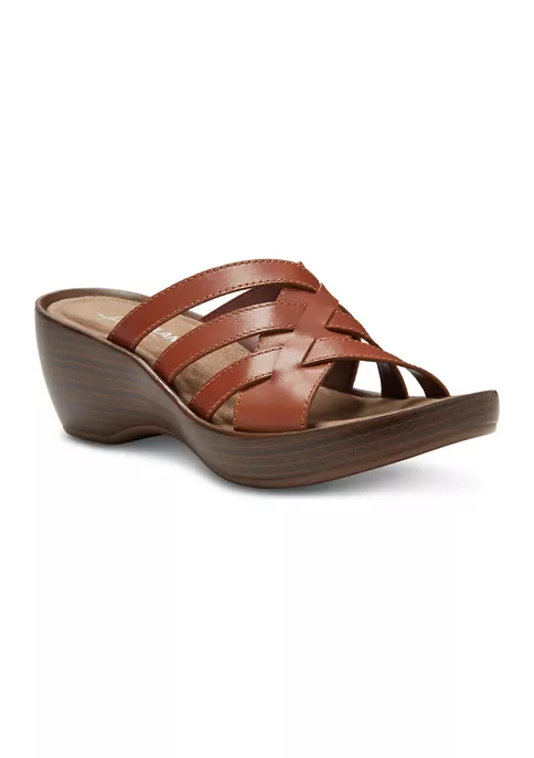 Meet this summer’s go-to outfit finisher – our strappy Poppy wedge sandal. Full-grain leather woven straps. Eastland Exclusive Active Memory Foam comfort insole supports and conforms to the curves of your foot. Shock absorbing Polyurethane outsole offers lightweight durability. Heel Height: 2 1/2″.