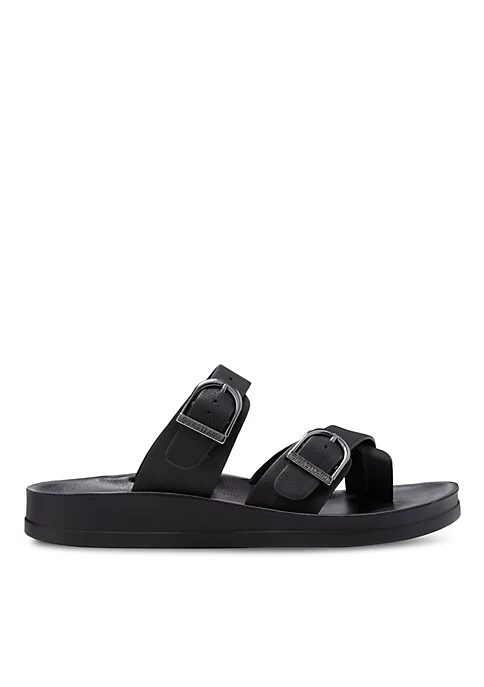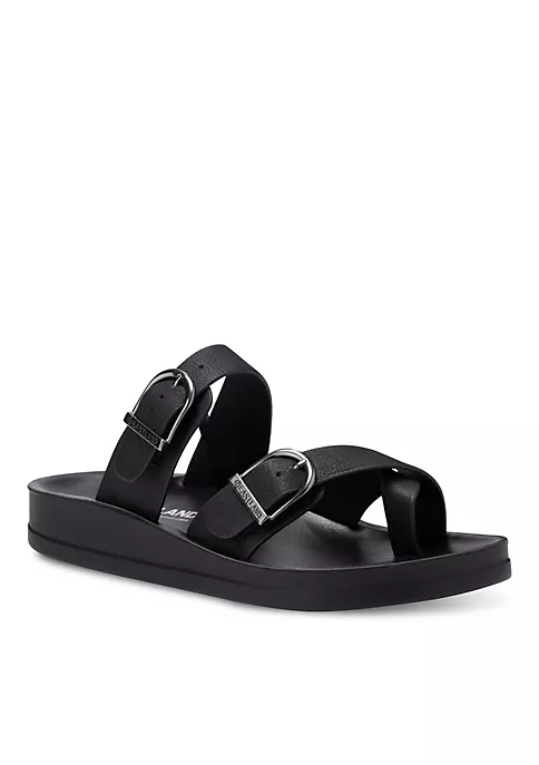 Enjoy easygoing style and comfort in the Savannah strappy slide sandal. Synthetic upper with a soft lining for barefoot comfort. Adjustable strap and buckles provide a custom fit. Cushioned insole for all-day comfort. Shock absorbing Polyurethane outsole offers lightweight durability and traction. Heel Height: 1 1/4”.