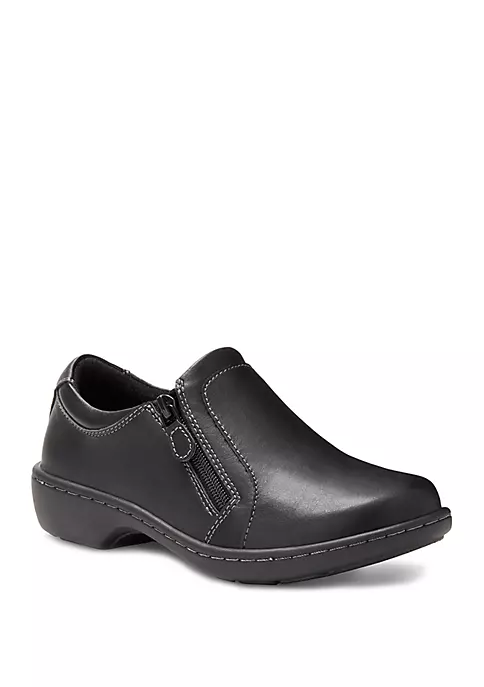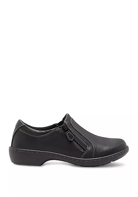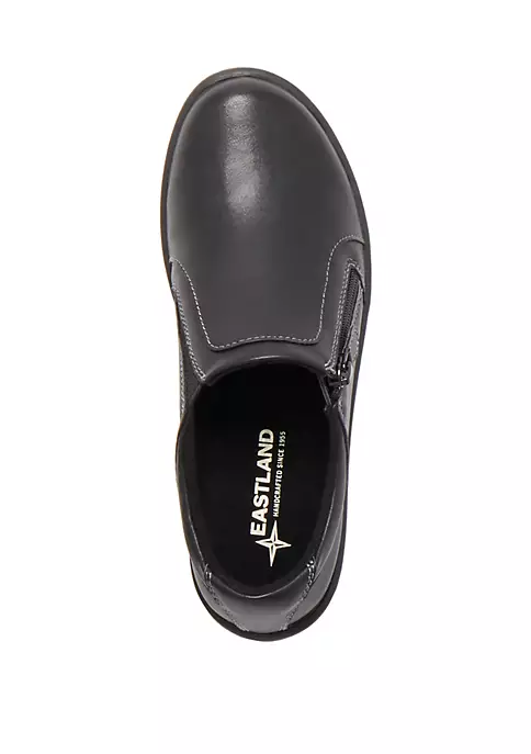 Featuring the comfort of casual shoes in a versatile slip-on silhouette, the Vicky shoes by Eastland® are ideal for everyday wear. They boast a synthetic upper with fabric lining and an outside zipper allows for easy on and off. The fabric-lined memory foam comfort insole supports and conforms to the curves of your foot, while the shock-absorbing polyurethane outsole offers lightweight durability and traction.